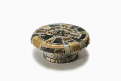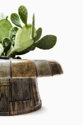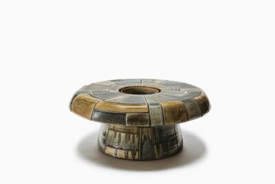 Mamalu, determined to seduce and party hard, includes a secret lidded bucket for tequila, a plant or stash storage. This mushroom inspired table is made from a patchwork of hand-made stoneware ceramic tiles.