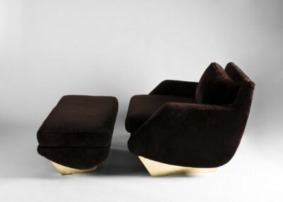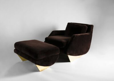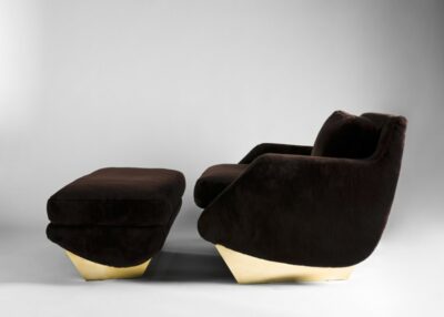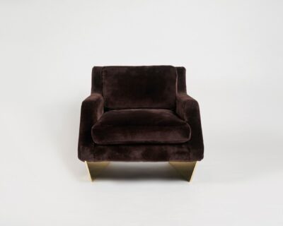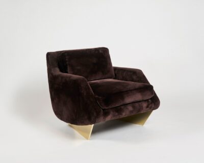 A companion to the well known sofa, this fabulous armchair by Georgis & Mirgorodsky features an extra wide seat and rests on a pair of well-spaced, polished bronze legs.